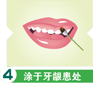 4.然后用小壓片把拌成糊狀的清火膠囊均勻涂抹在患處,保持患處藥物停留處3分鐘,避免藥物流動影響效果;5.3分鐘后,用飲用水漱口,清洗干凈即可。